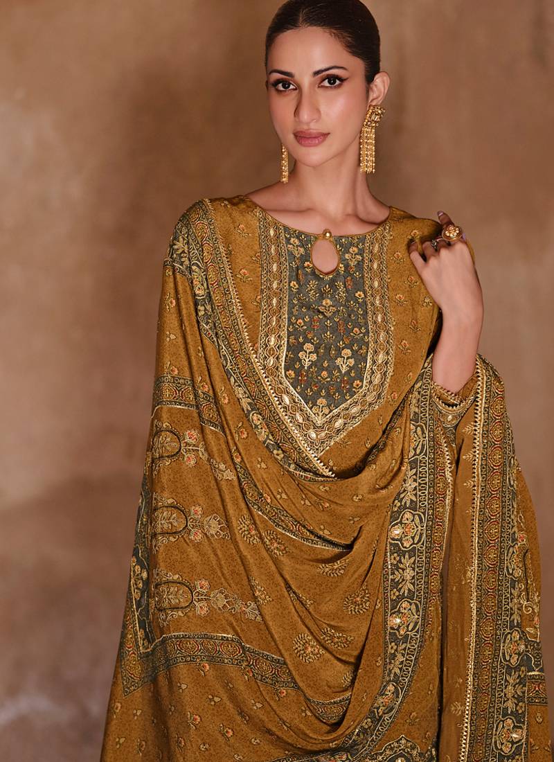 | Product Name | Latest Wedding Wear Russian Silk Mustard Gharara Suit For Women | |