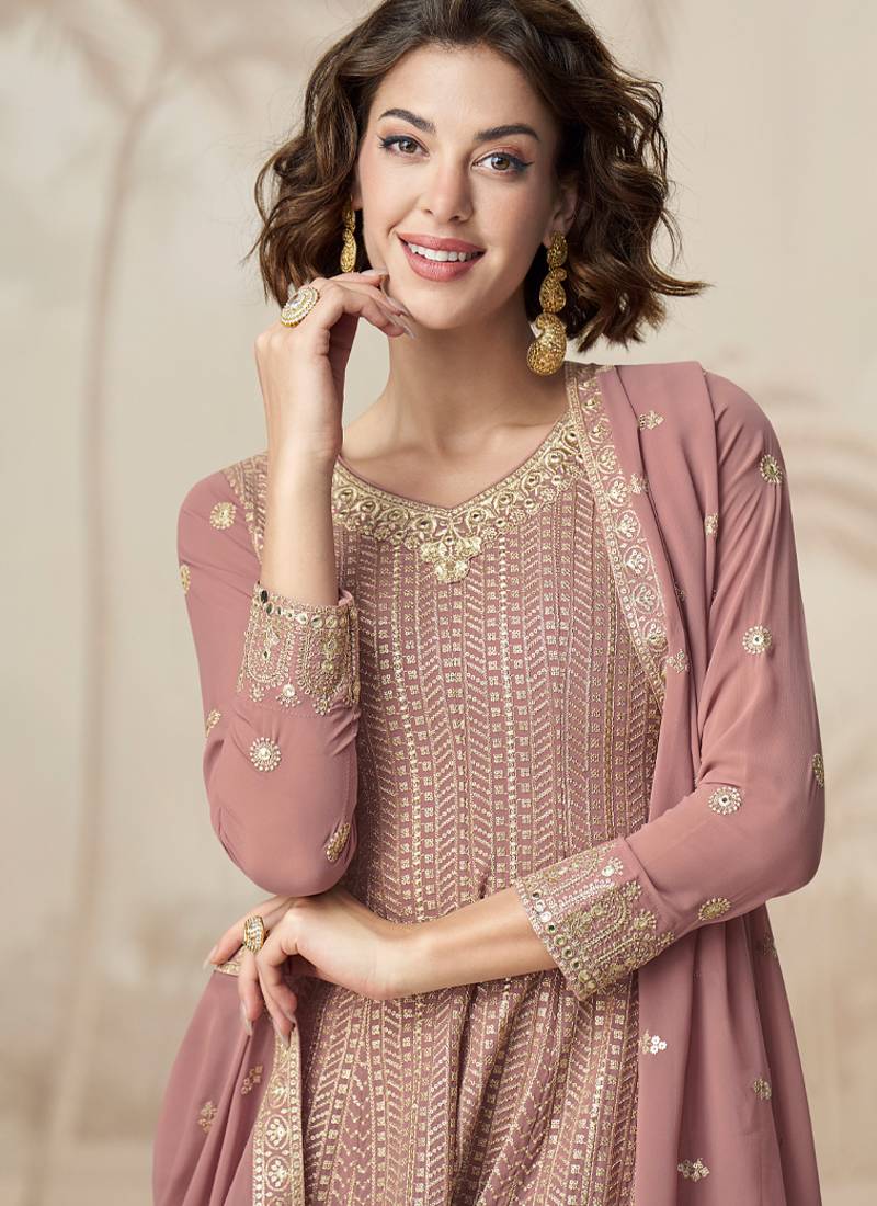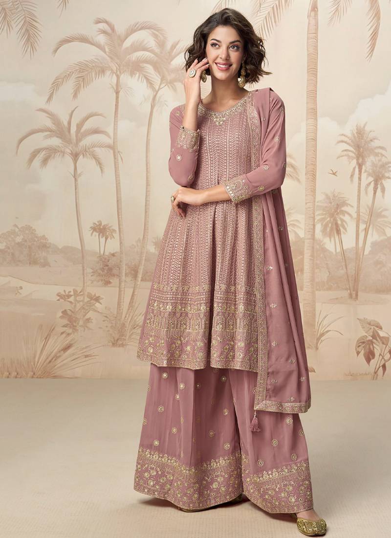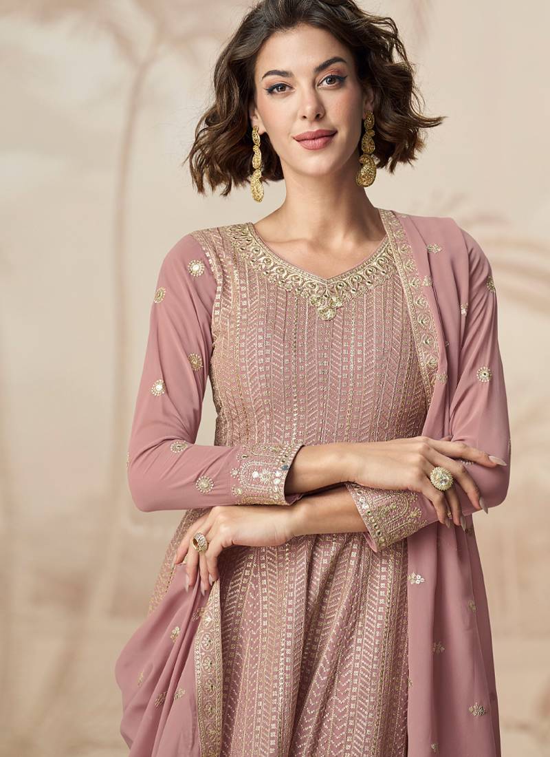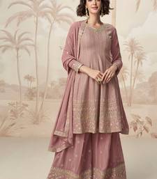 Peplum style pink heavy embroidered salwar kameez for women-full stitched free size semi stitched