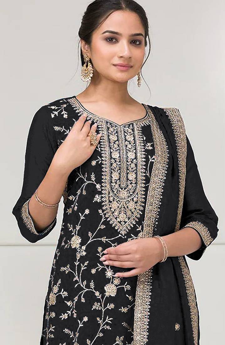 Black color vichitra silk fabric designer embroidery work sharara semi stitched