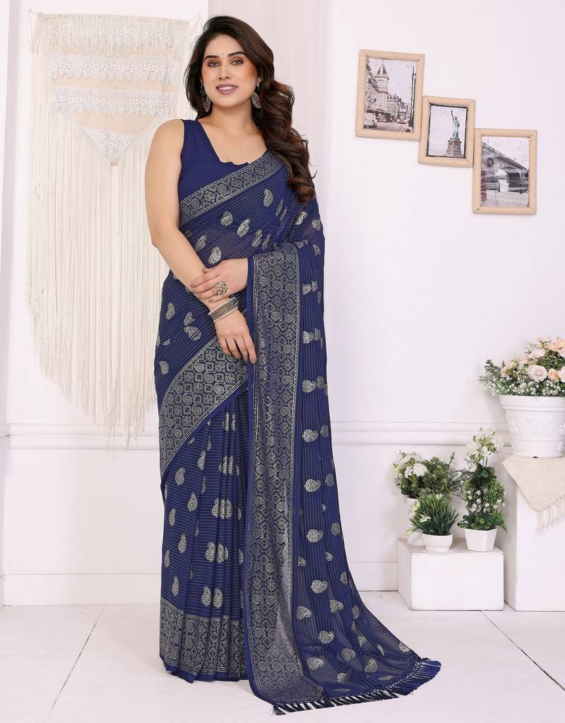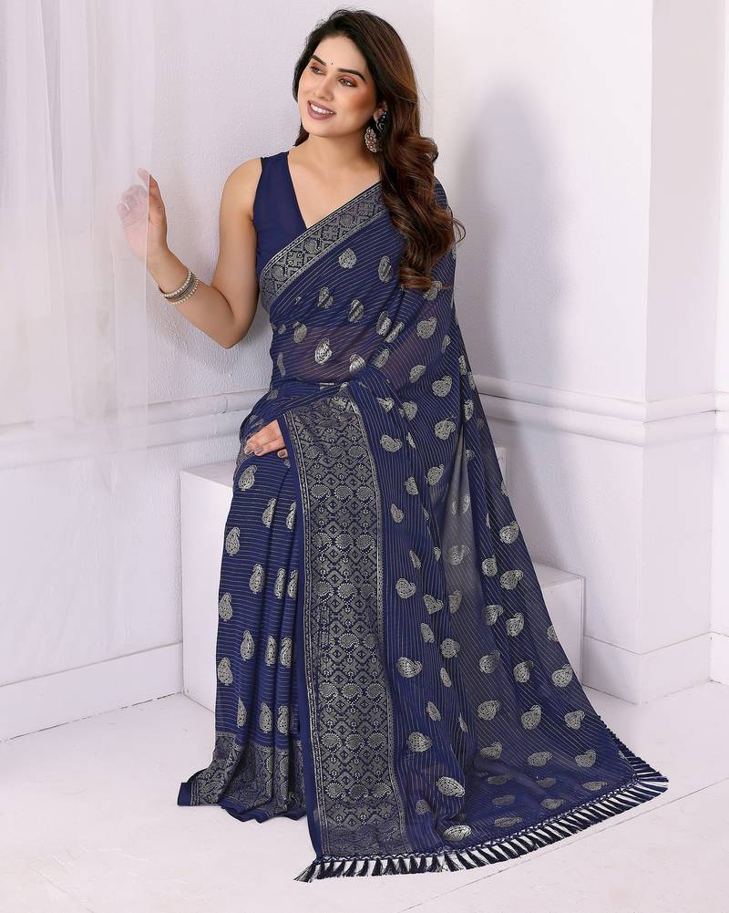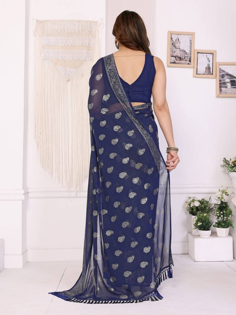 | Product Name | Blue Color Georgette Fabric Designer Foil Printed Ceremonial Saree | |