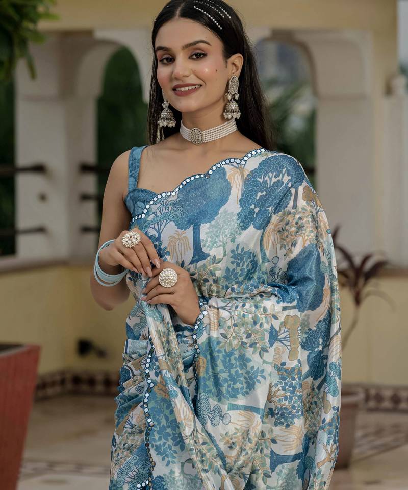 | Product Name | Blue Color Graceful Chinon Fabric Smart Girlie Printed Ready To Wear Saree | |