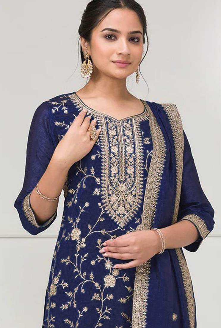 Blue color vichitra silk fabric designer embroidery work sharara dress semi stitched