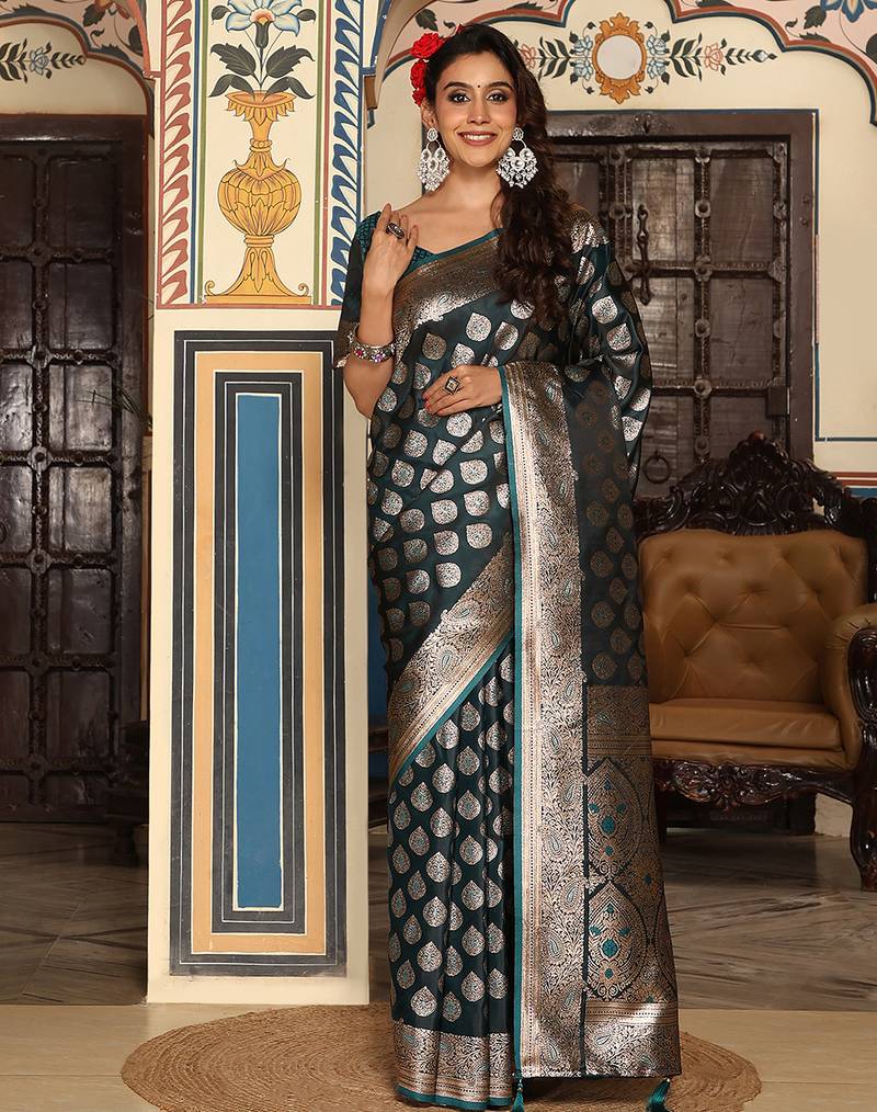 Bottle green color silk blend blend woven designer ethnic partywear saree