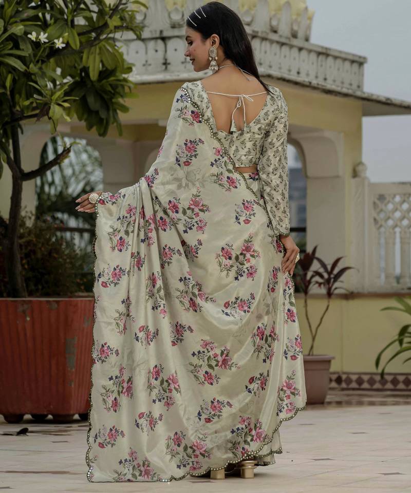| Product Name | Grey Color Graceful Chinon Fabric Smart Girlie Printed Ready To Wear Saree | |