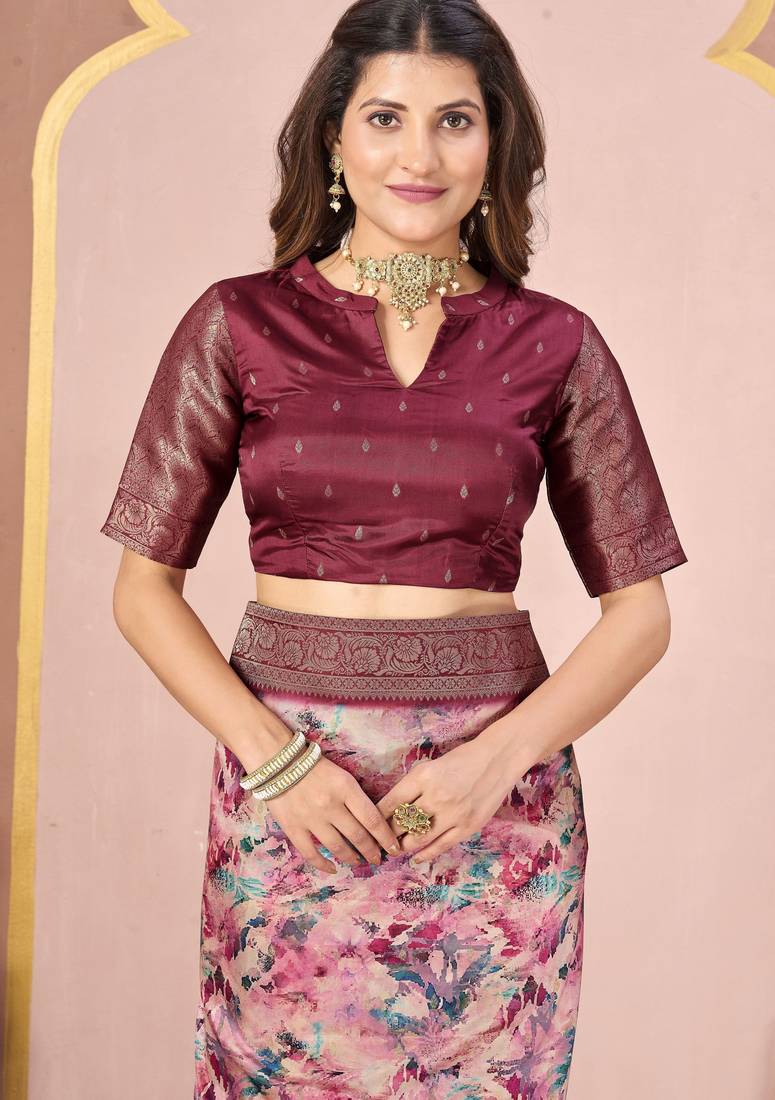 | Product Name | Maroon Color Tussar Silk Blend Designer Printed Saree With Woven Designer | |
