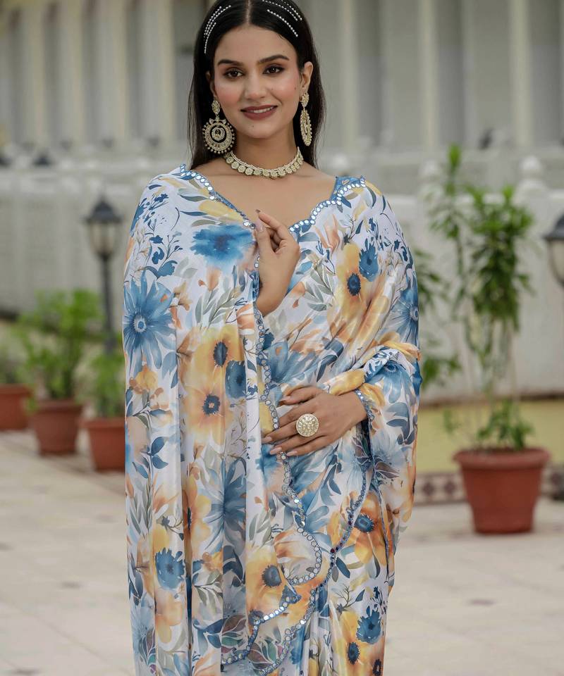 | Product Name | Multy Color Graceful Chinon Fabric Smart Girlie Printed Ready To Wear Saree | |