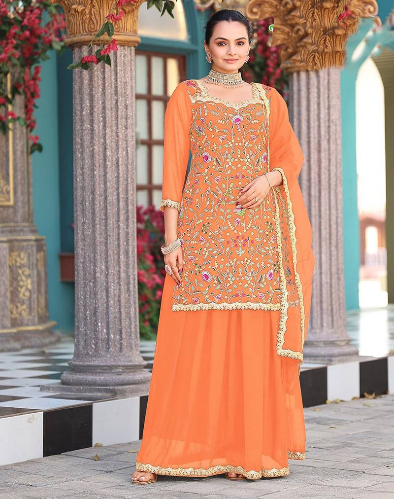 | Product Name | Orange Color Graceful Heavy Embroidered Palazzo Set | |