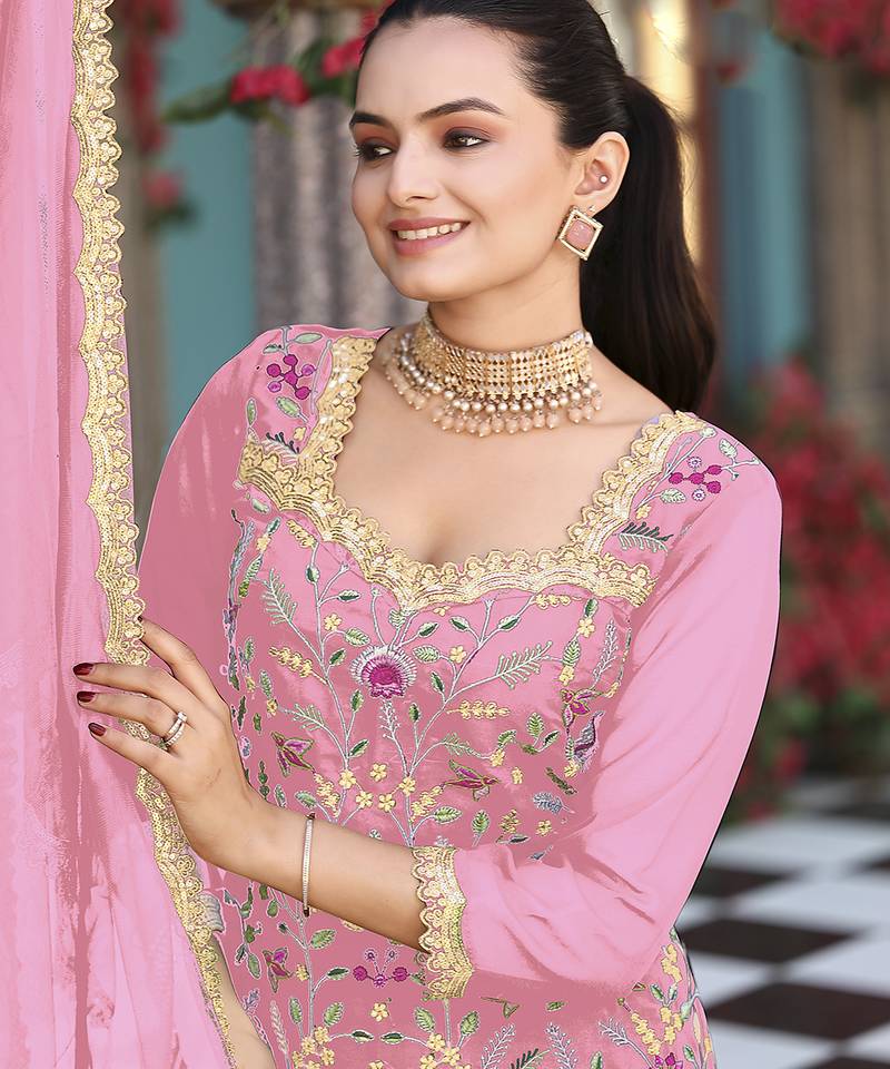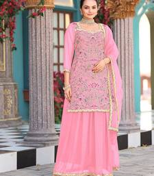 Pink color graceful heavy embroidered palazzo set semi stitched
