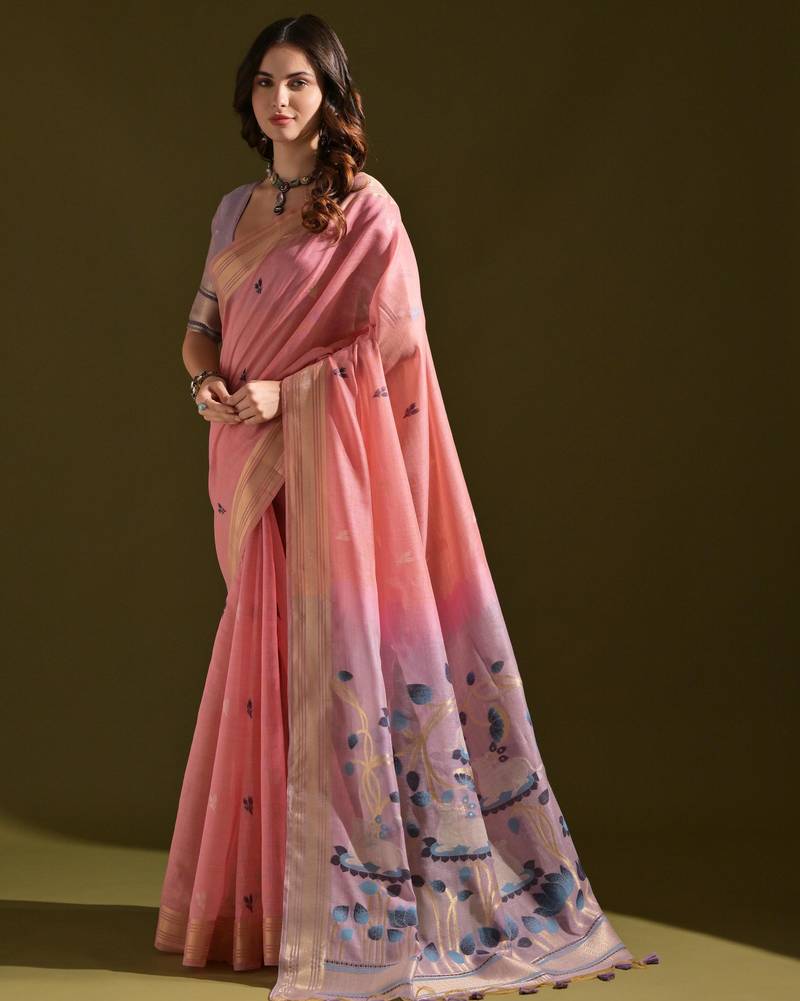 | Product Name | Pink Color Muga Cotton Designer Ethnic Partywear Saree | |