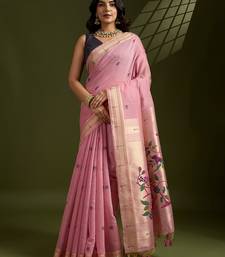 Pink color paithani weaving designer muga cotton fabric ethnic partywear saree