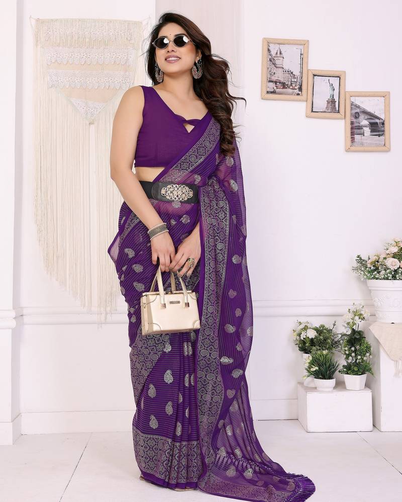 | Product Name | Purple Color Georgette Fabric Designer Foil Printed Ceremonial Saree | |