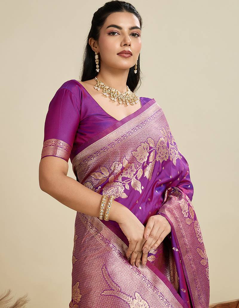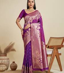 Purple color wevon jari rich pallu border designer kanjivaram silk blend saree