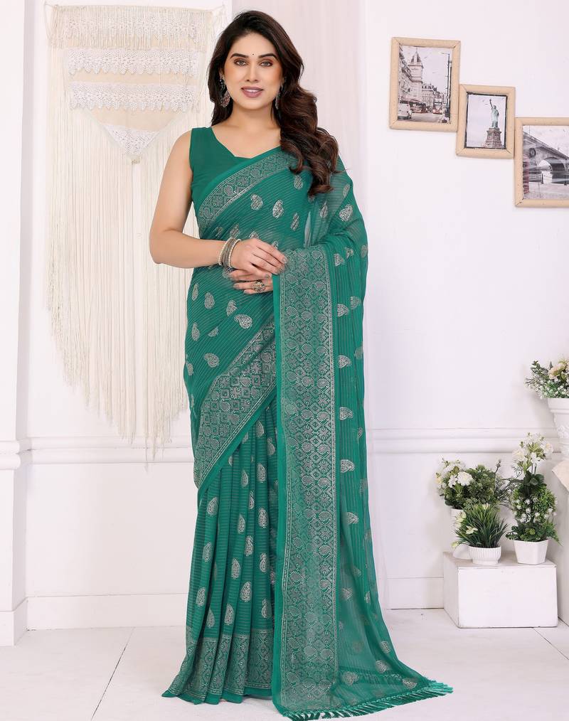 | Product Name | Rama Color Georgette Fabric Designer Foil Printed Ceremonial Saree | |