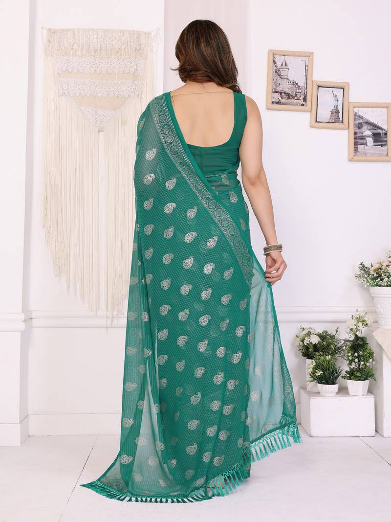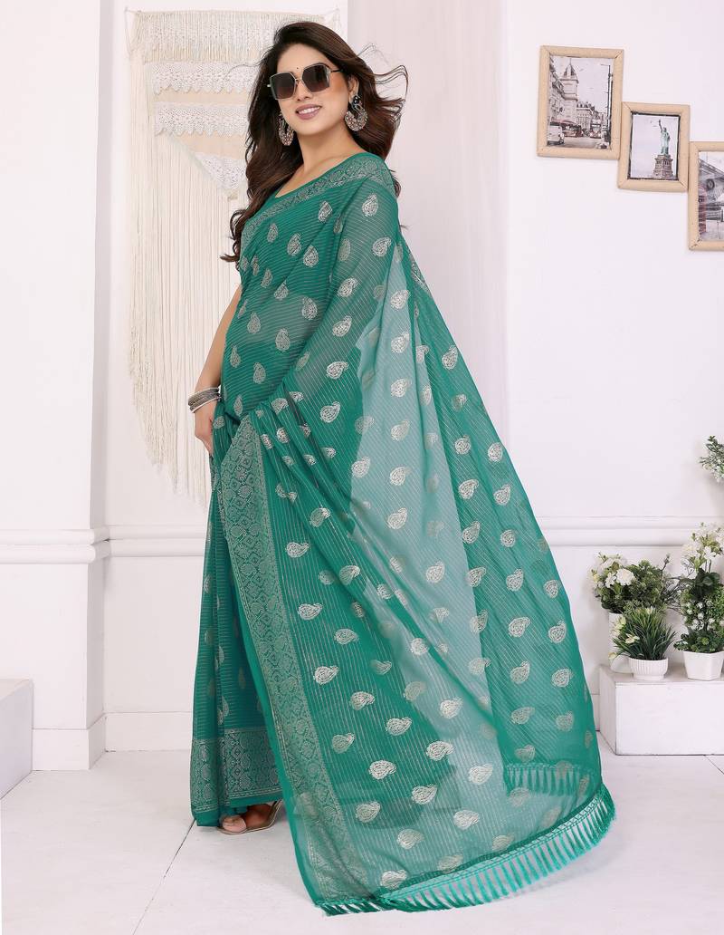| • | Saree | : | Color- Green / Fabric- Faux Georgette |