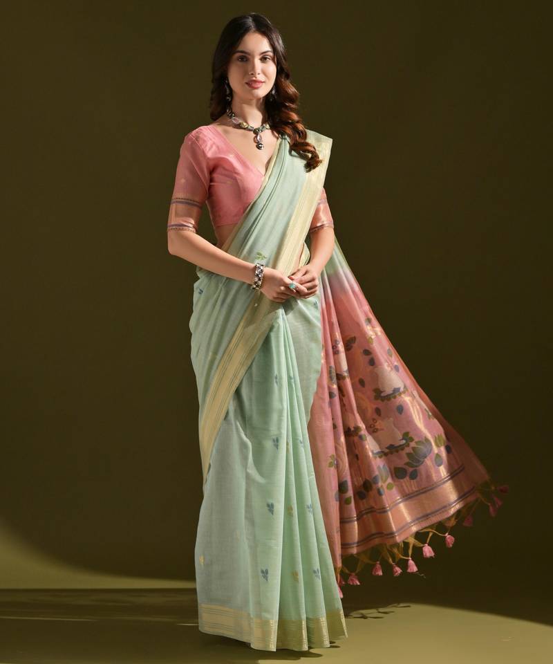 | • | Saree | : | Color- Sea Green / Fabric- Blended Cotton |