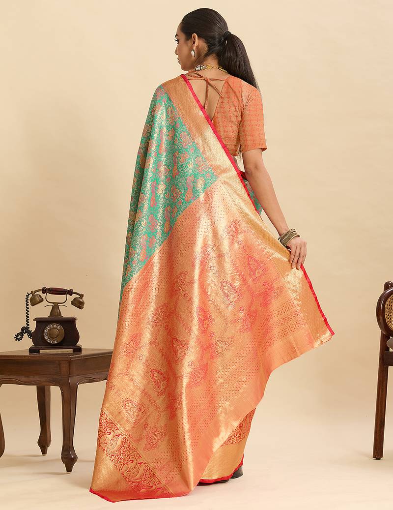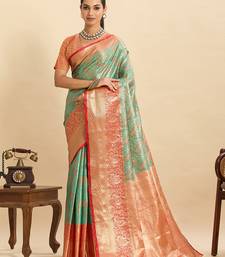 Sea green color silk blend blended woven jari designer ethnic partywear saree