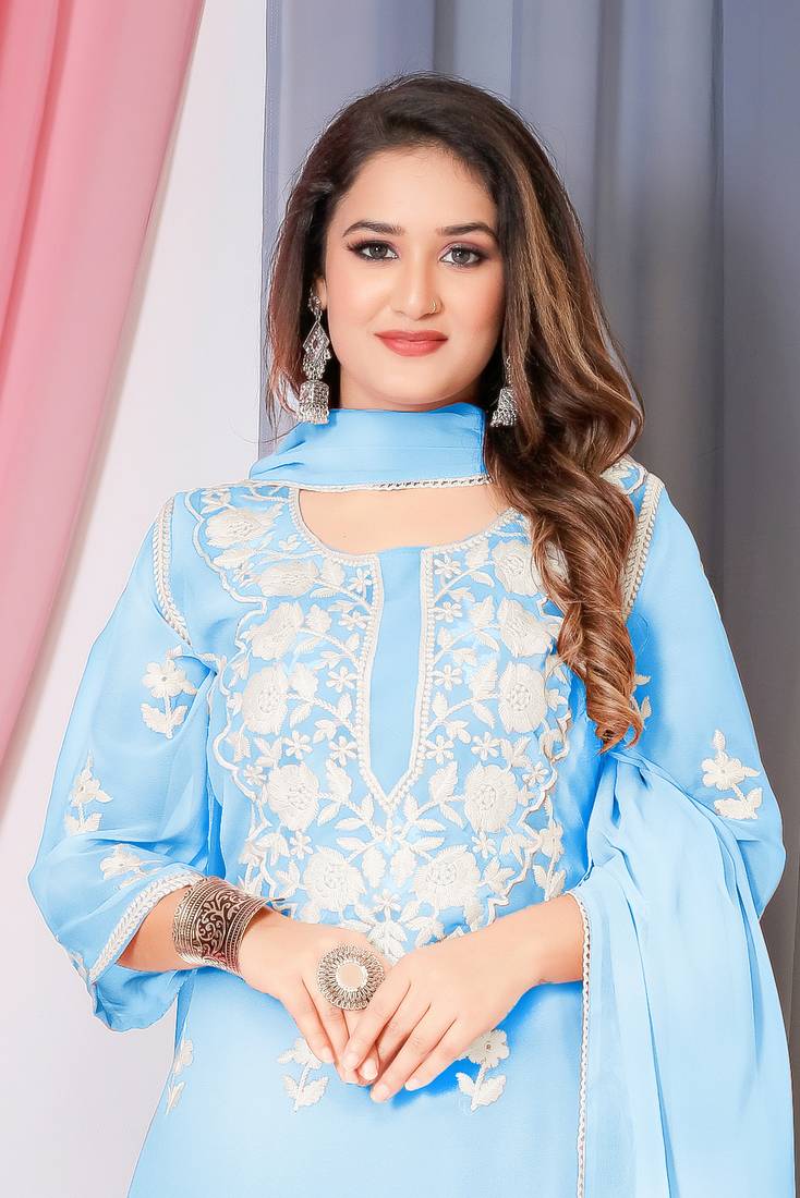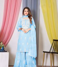 | Product Description | • Blue Georgette Straight Sharara Suit.