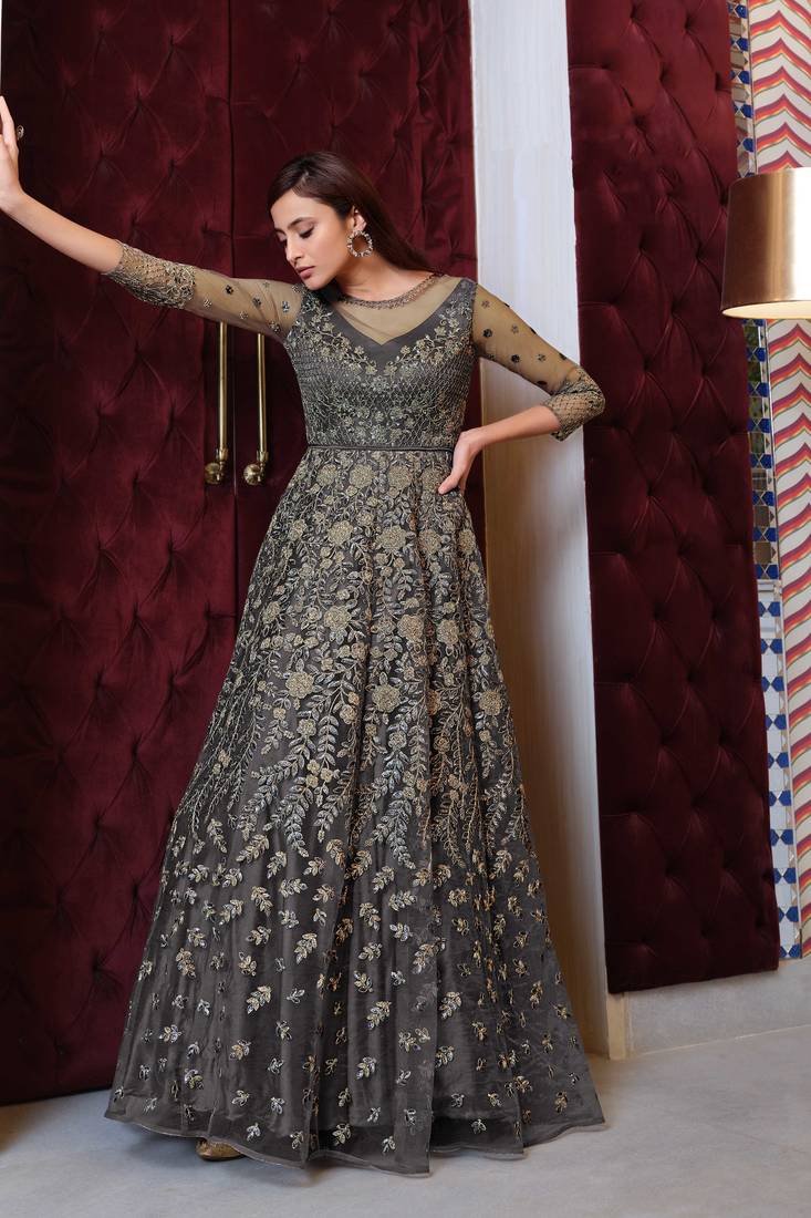 | Product Name | Grey Embroidered Net Semi Stitched Anarkali Suit. Up To 42" Size | |