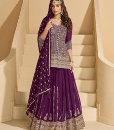 Purple embroidery sequins & stone gerogette straight lehenga suit-full stitched free size