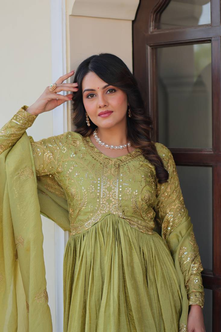 | Product Name | Green Gold Crush Gown And Duptta With Sequins & Multi Embroidered Work | |