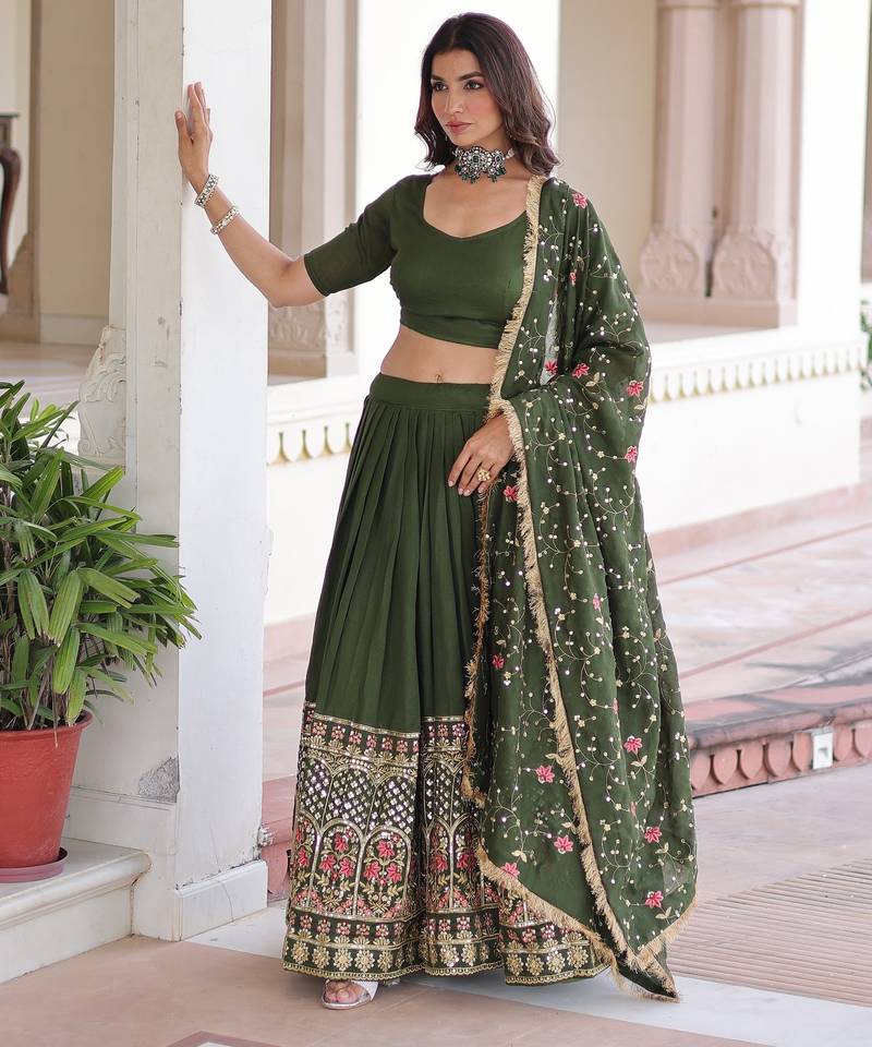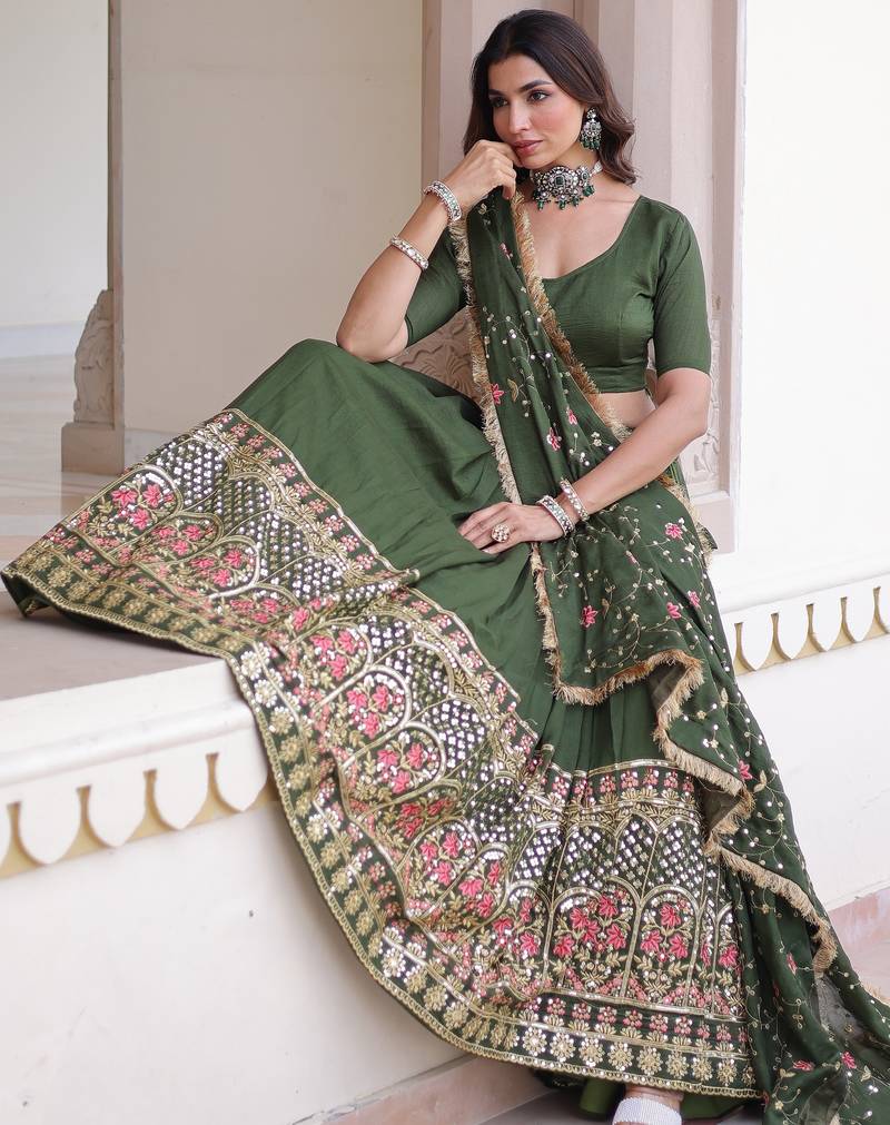 Green vichitra silk with sequins embroidered work lahenga choli and duptta