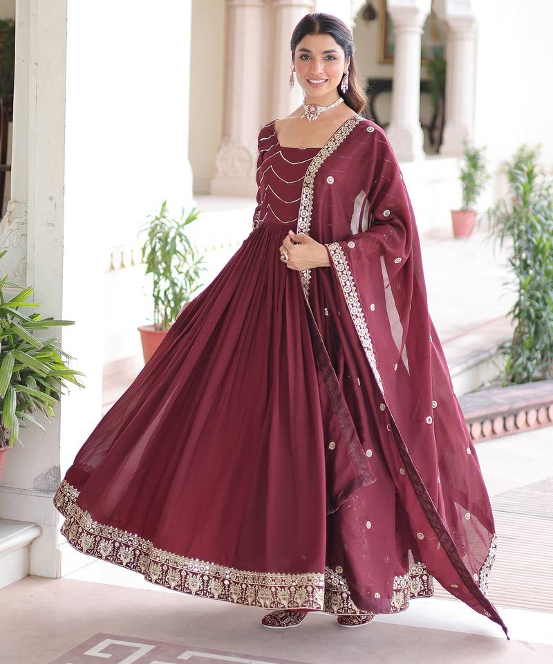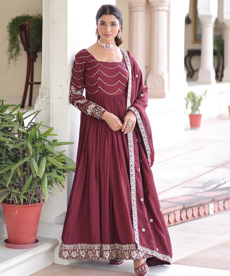| Product Name | Maroon Vichitra Silk With Rich Sequins Embroidered Work Kurti N Duptta | |