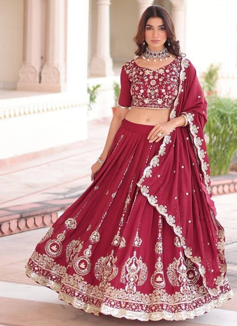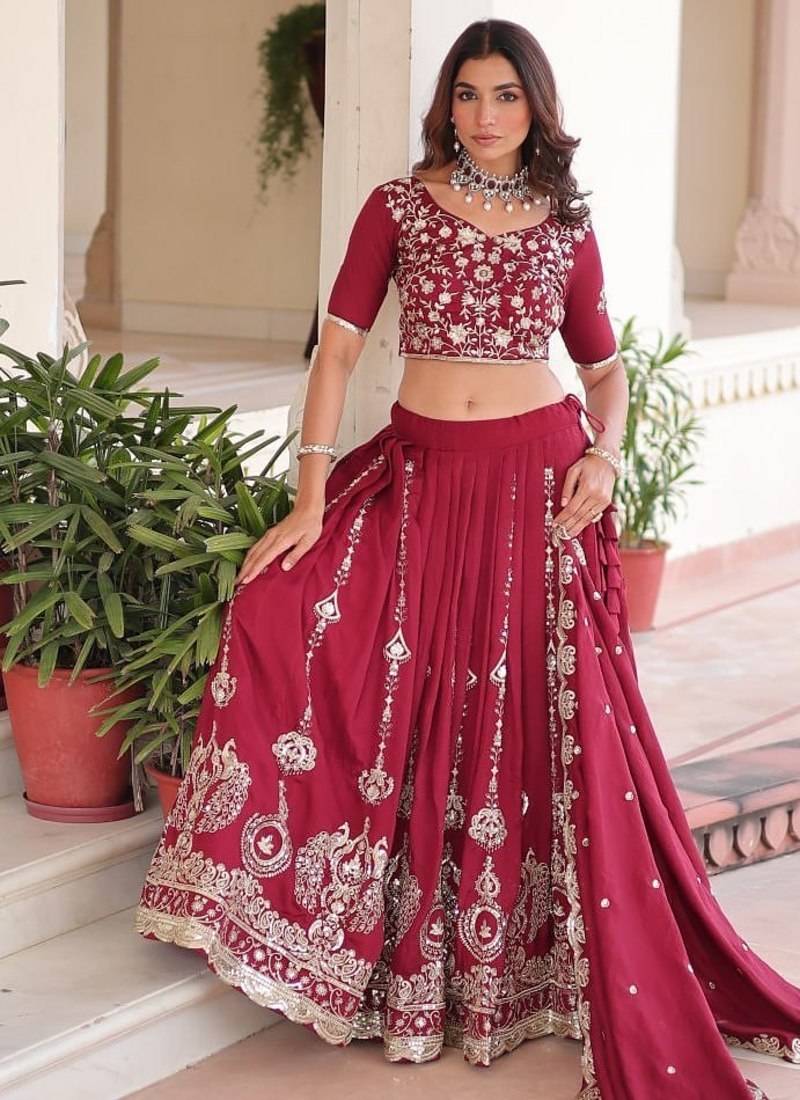 Maroon vichitra silk with sequins embroidered work lahenga choli and duptta