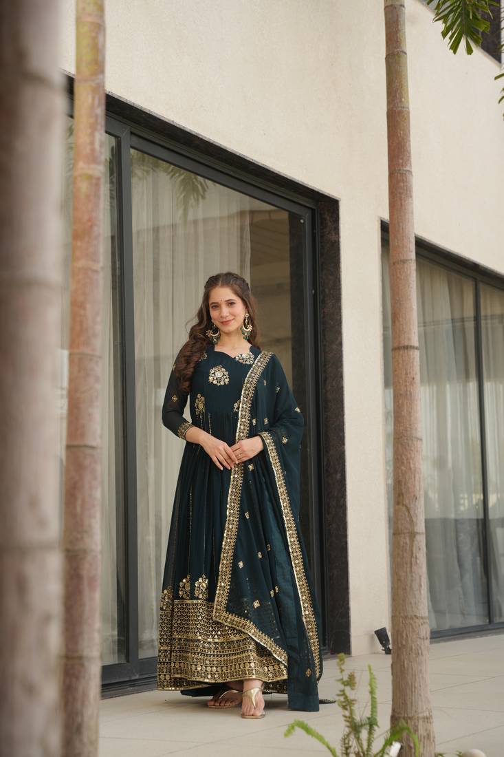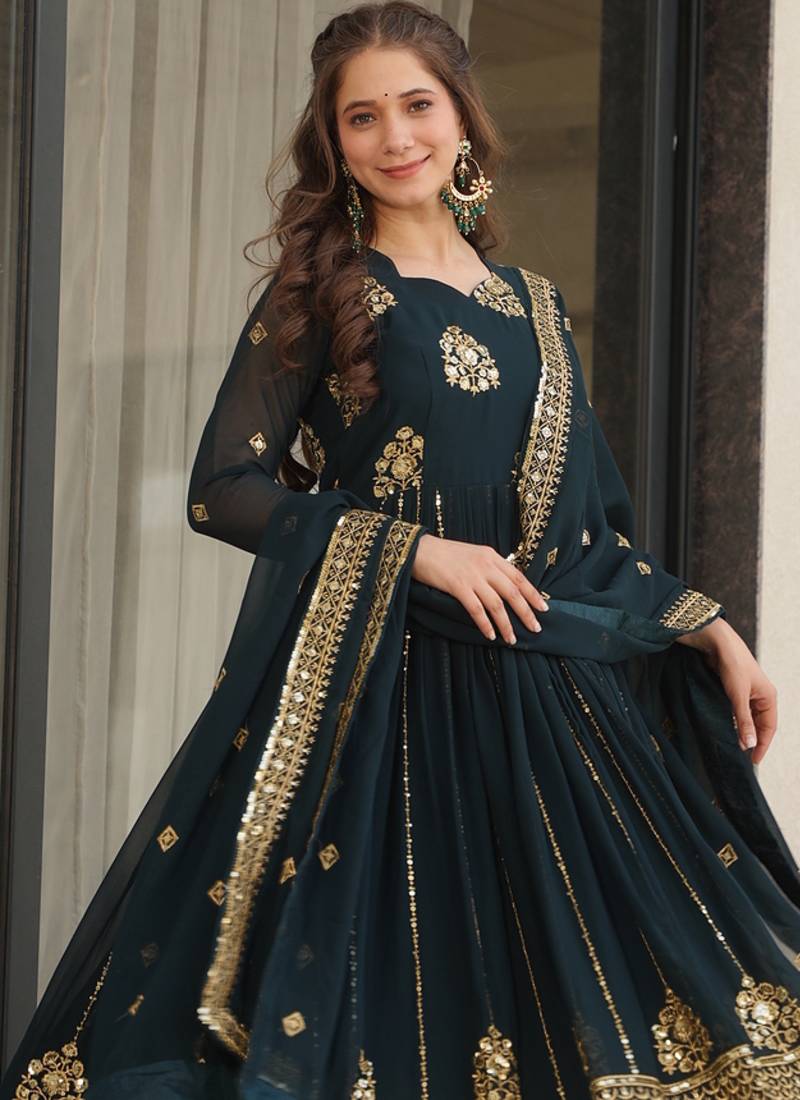 | Product Name | Rama Green Faux Georgette With Zari & Sequins Embroidered Work Kurti N Duptta | |