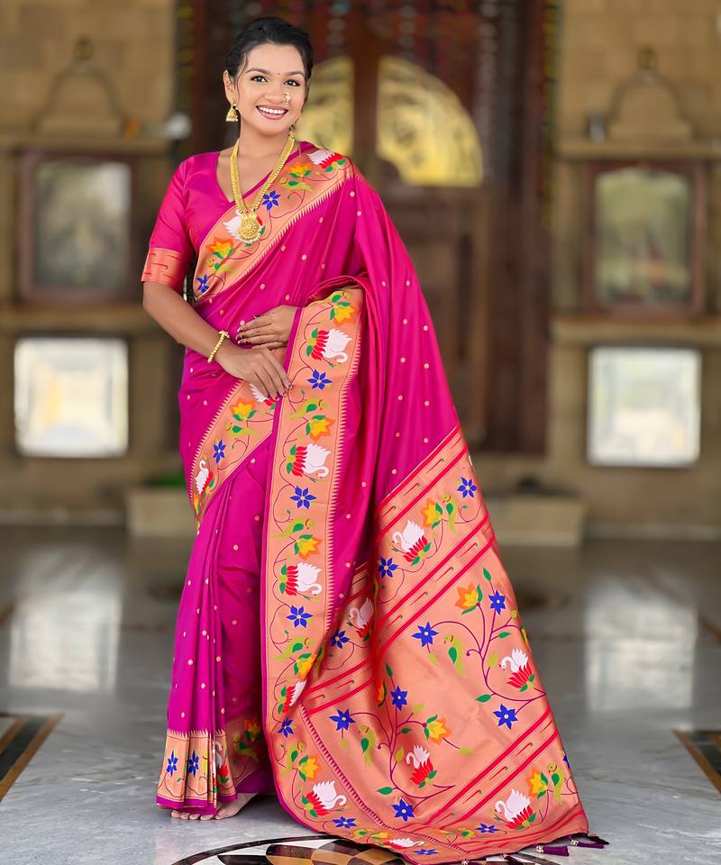 | Product Description | Soft Paithani Silk Saree With Meenakari Weawing Design And Rich Meenakari Weawing Pallu With Zari Weawing Border & Tessels Attach At Pallu End , Silk Weawing Blouse Piece |