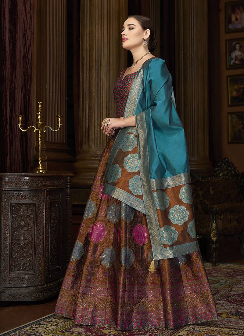 | Product Name | Brown Color Kanjiwaram Silk Jacquard Designer Lehenga Choli | |