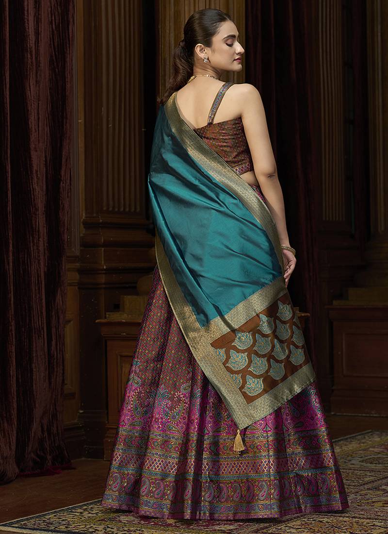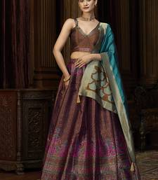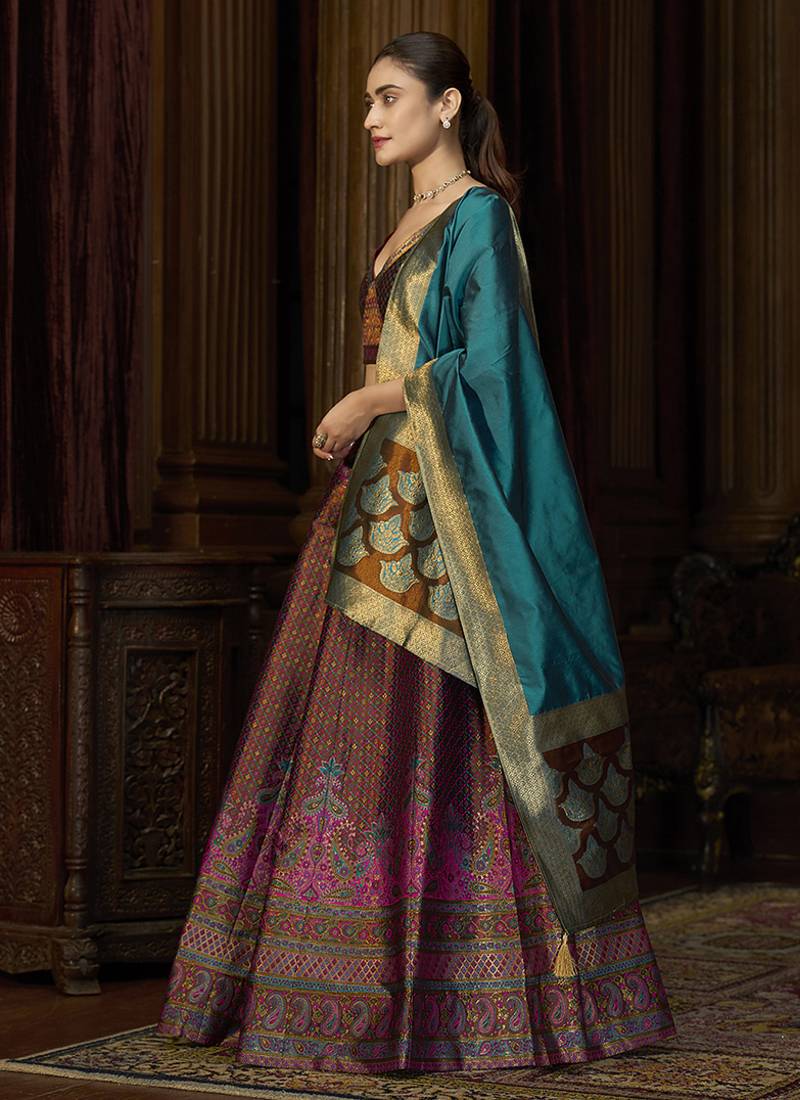 Brown kanjiwaram silk jacquard woven trendy lehenga choli