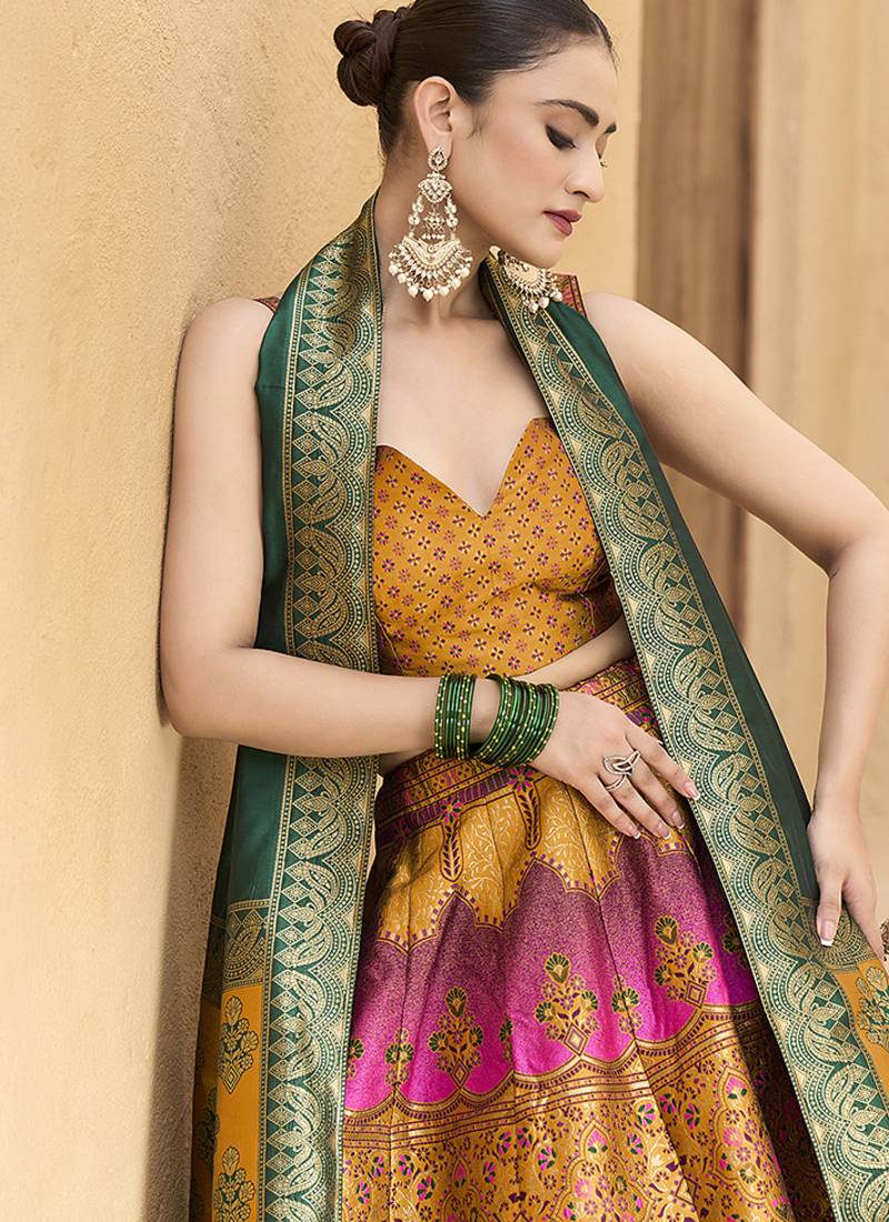 Designer lehenga choli jacquard kanjiwaram silk in yellow