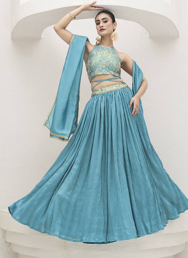 | Product Name | Sky Blue Festive Look With Silk Crush Lehenga Choli | |