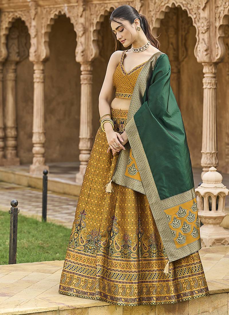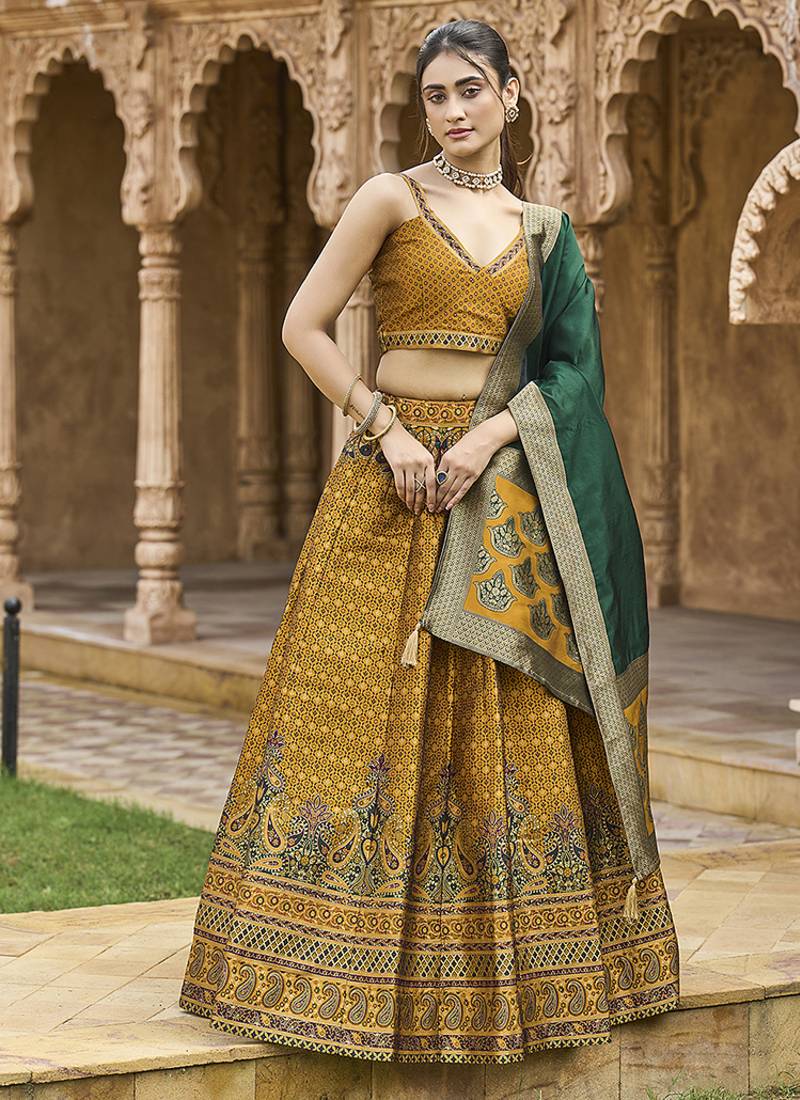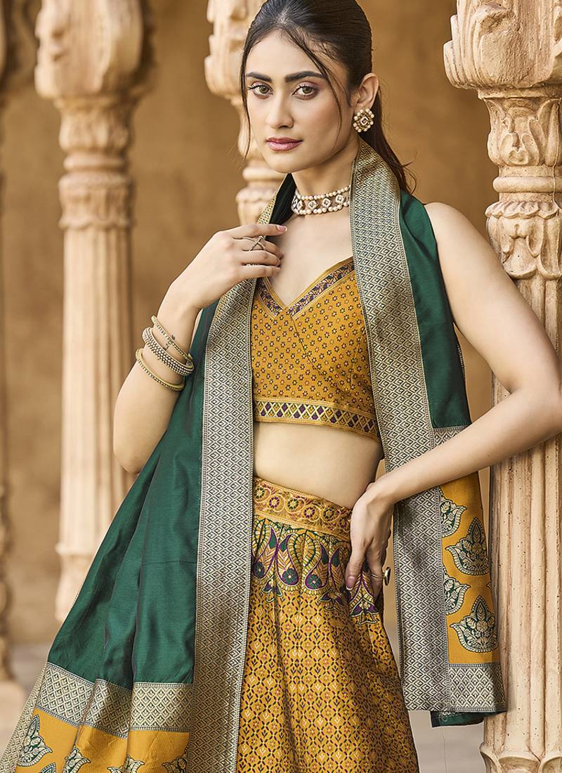 | Product Name | Yellow Kanjiwaram Silk Jacquard Woven Trendy Lehenga Choli | |