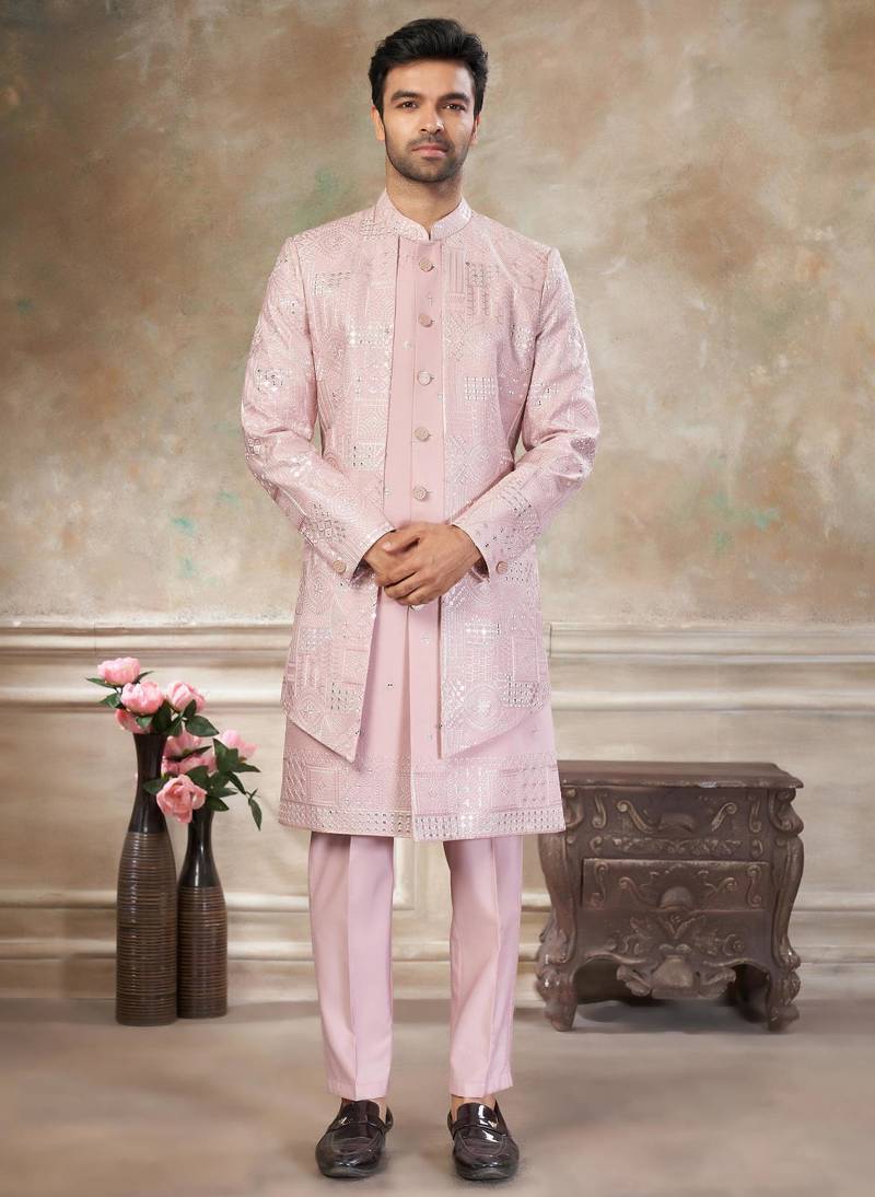 Product Name Pink Pure Viscos With Embroidery And Sequence Work Indowestern Collections