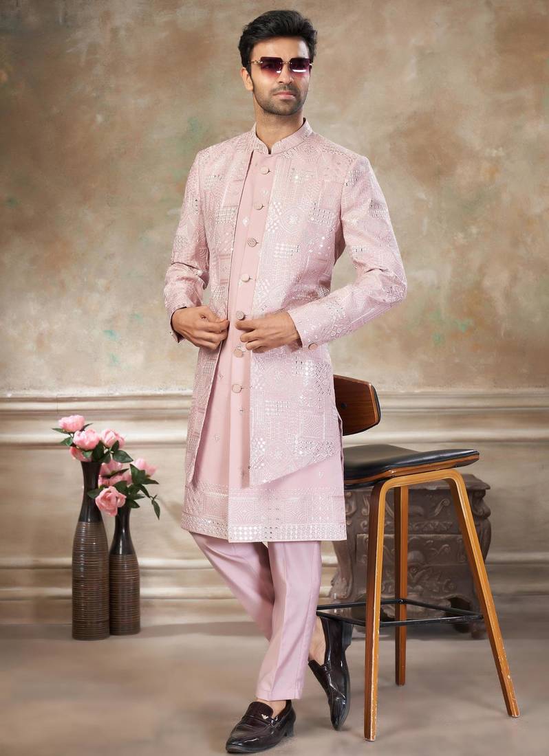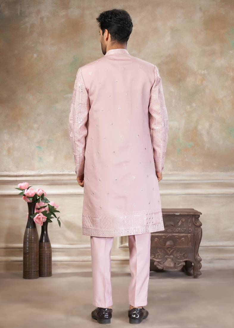 Pink pure viscos with embroidery and sequence work indowestern collections