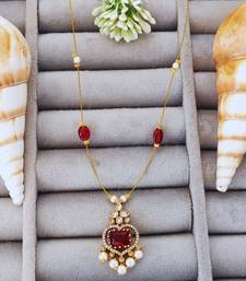 | Product Name | Elegant Gold Plated Red Stone Pendant Chain With Pearl Drops | |