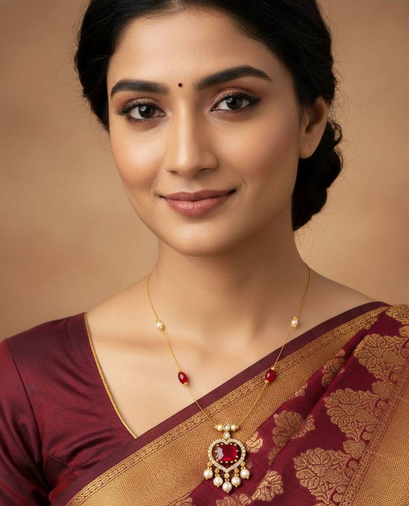 | Product Description | Beautiful Gold Plated Chain With A Deep Red Stone Pendant, Crystal Detailing, And Pearl Drops. Perfect For Festive Occasions, Traditional Outfits, And Elegant Everyday Styling |