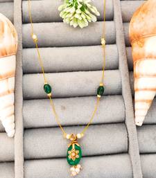 | Product Description | Elegant Gold Plated Chain With A Green Oval Pendant, Crystal Detailing, And Pearl Drops. Lightweight And Perfect For Daily Wear, Festive Styling, And Traditional Outfits |