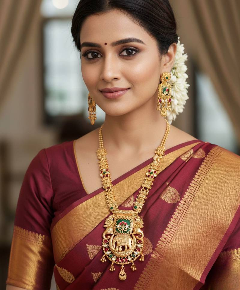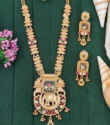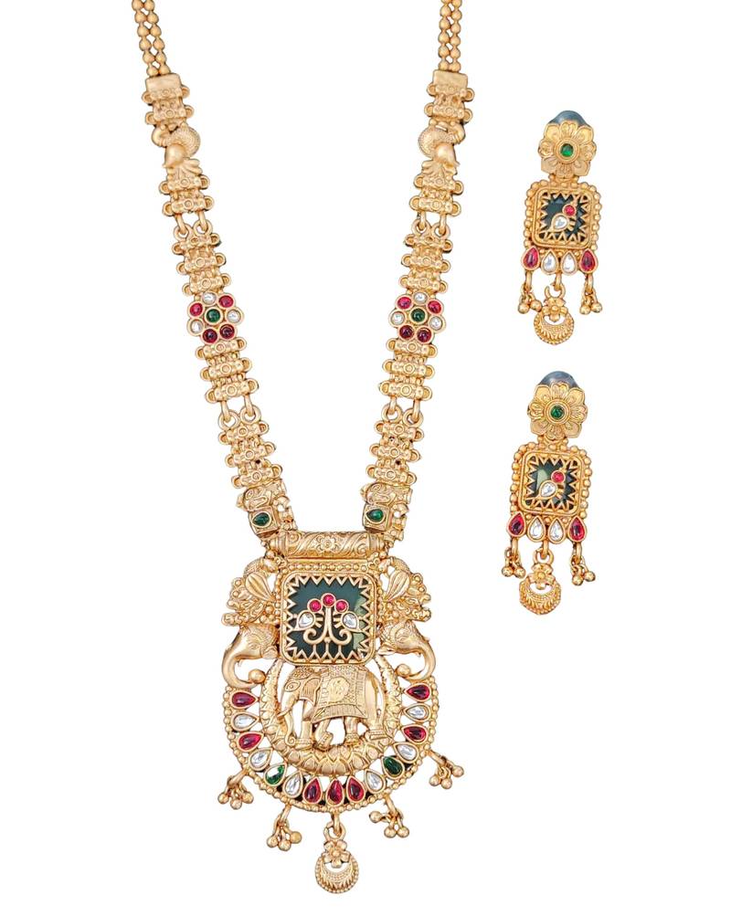 | Product Name | Temple Jewelry Necklace Set Featuring Elephant Design Pendant Matching Earrings For Weddings And Special Occasion | |