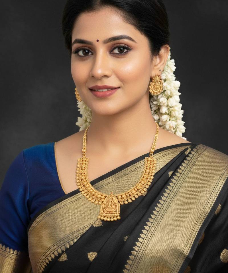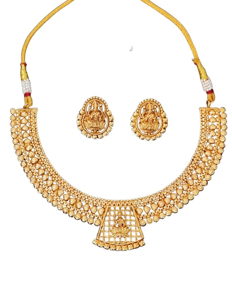 | Product Description | Beautiful Antique Gold Lakshmi Temple Necklace Set Featuring Detailed Carvings, Classic Temple Motifs, And Matching Earrings. Ideal For Weddings, Festivals, Temple Functions, And Traditional South Indian Ethnic Wea |