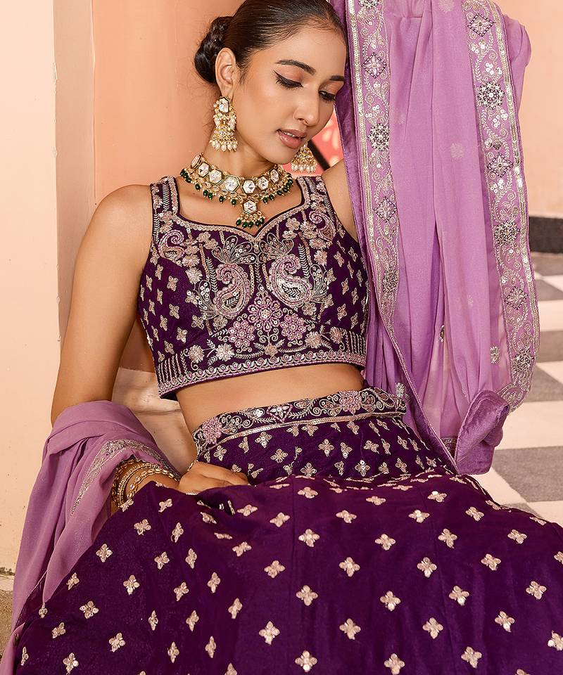 | Product Name | Burgundy Tissue Silk Fabric Sequins Embroidery Semi Stitched Lehenga & Unstitched Blouse With Dupatta | |