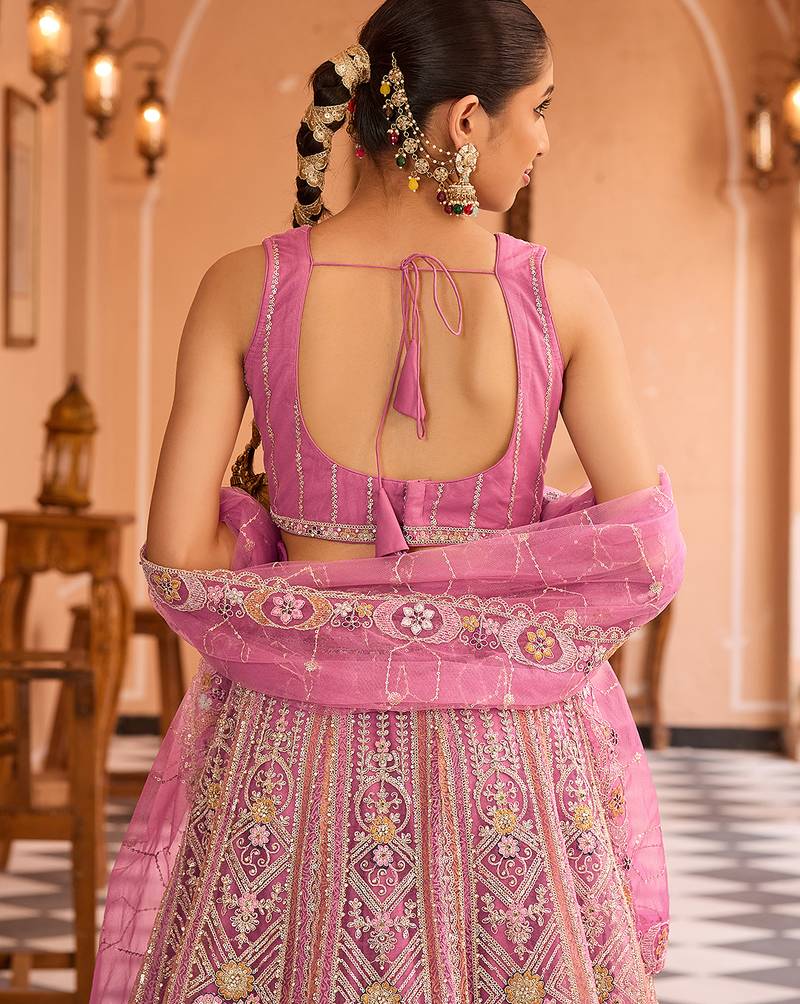 Lavender net fabric sequins embroidery semi stitched lehenga & unstitched blouse with dupatta