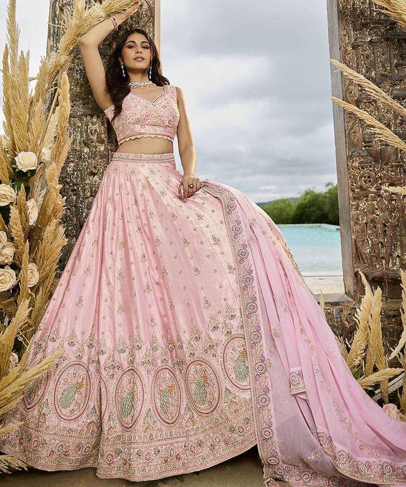 | Product Name | Pink Silk Fabric Beads & Sequince Embroidered Semi Stitched Lehenga Choli & Dupatta | |