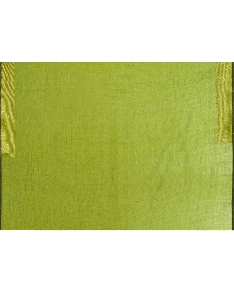 Women's apple green embellished sequinned cotton saree