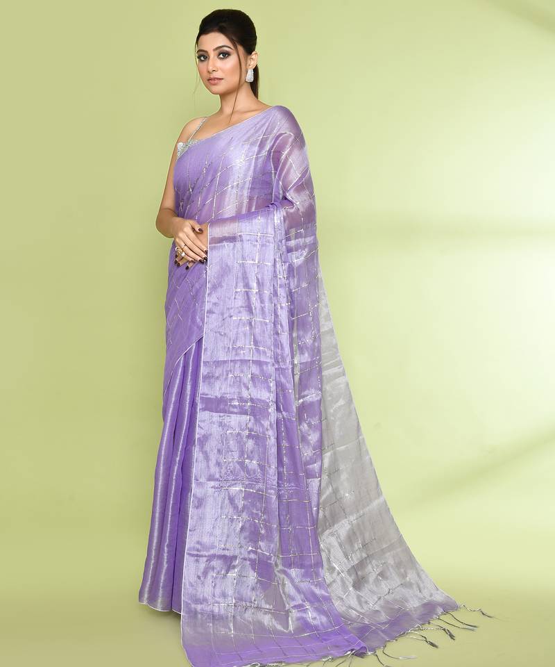 | Product Name | Women`s Lavender Zari Cotton Tissue Sequin Saree | |