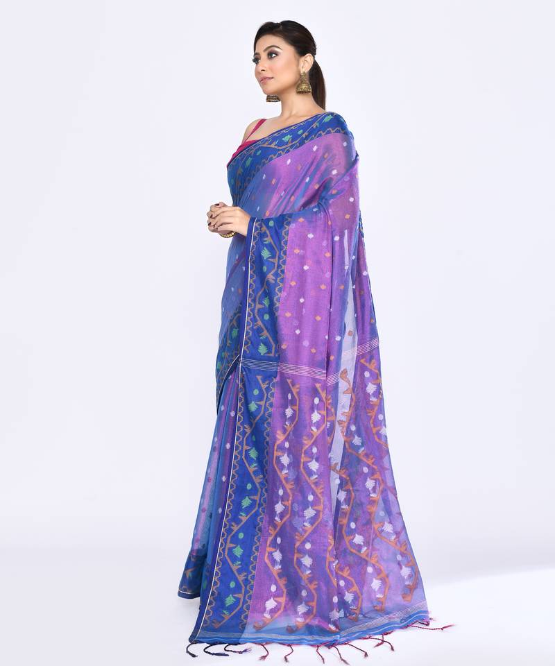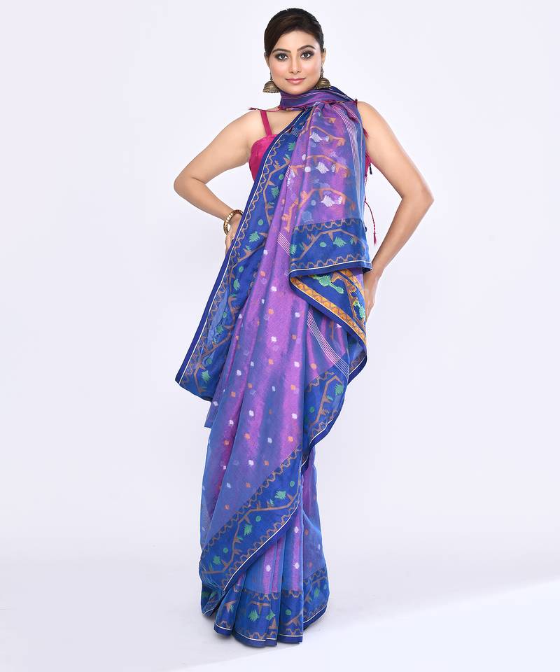 | Product Name | Women`s Pink Blue Zari Cotton Tissue Jamdani Saree | |