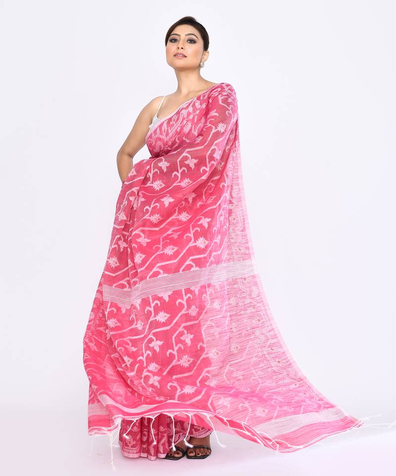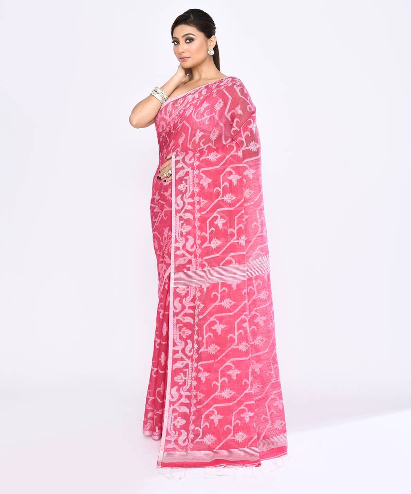 | Product Name | Women's Pink Embellished Cotton Blend Jamdani Saree | |