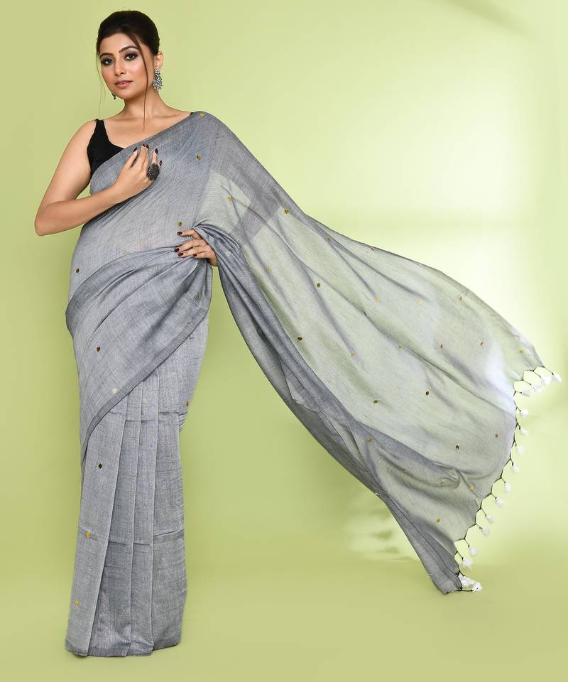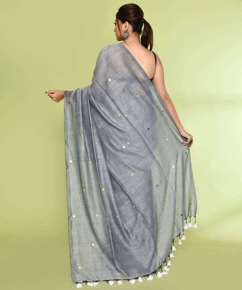 Product Name Women's Silver Grey Embellished Sequinned Cotton Saree