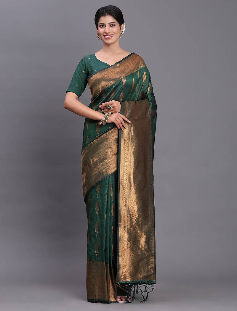 Drrk green color art silk zari woven work saree